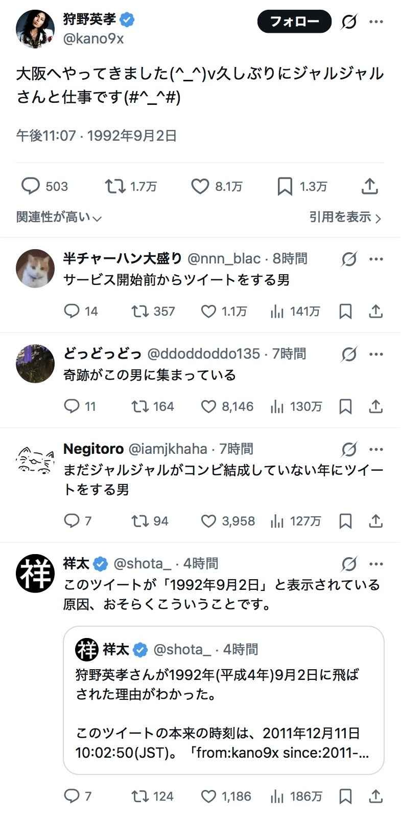 狩野英孝さんの1992年のツイートが発見される