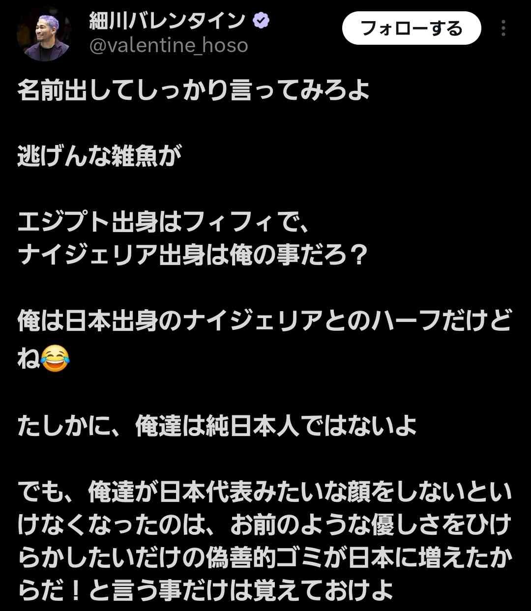 - いつから細川バレンティンがフィフィみたいな外人ネトウヨコメンテーターに定着したんだよ