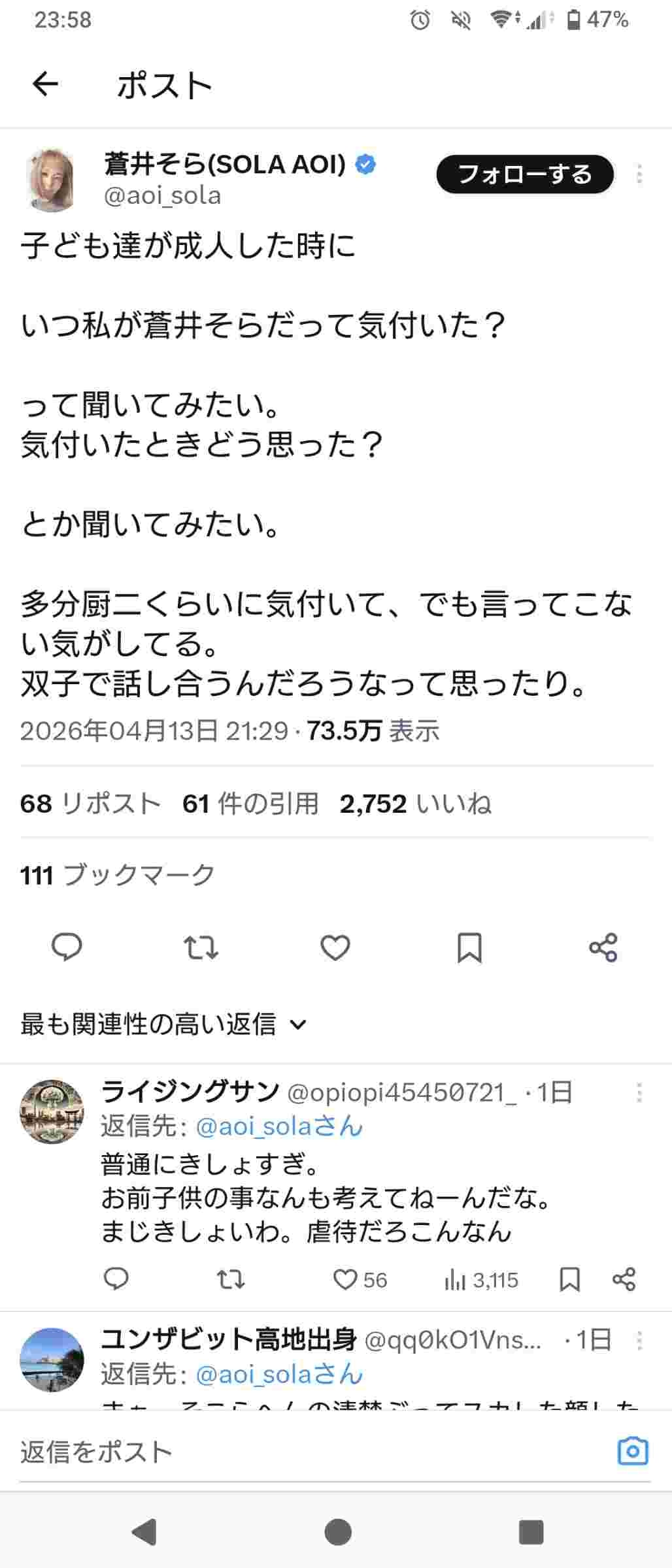 バラしていいよ😘 - 12 : 2026/04/15(水) 00:07:08.52 ID:40fYkobb0