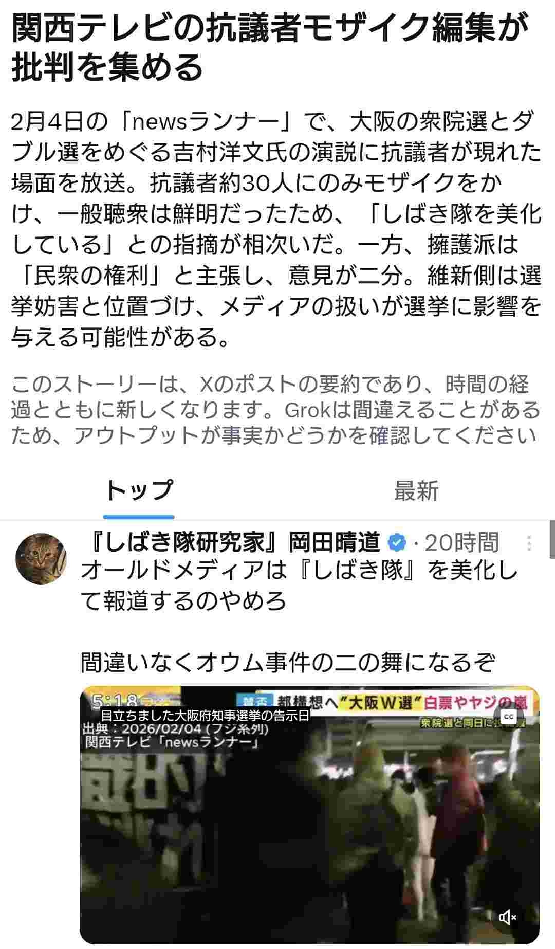 関西テレビ「しばき隊を美化して報道」、との指摘相次ぐ