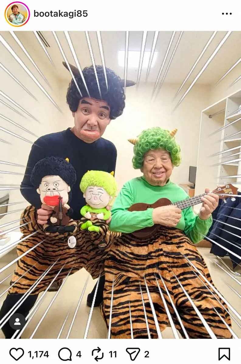 高木ブー 92歳の雷様姿「今日は節分です」 隣の黒雷様に「長さんそのまんま」の声