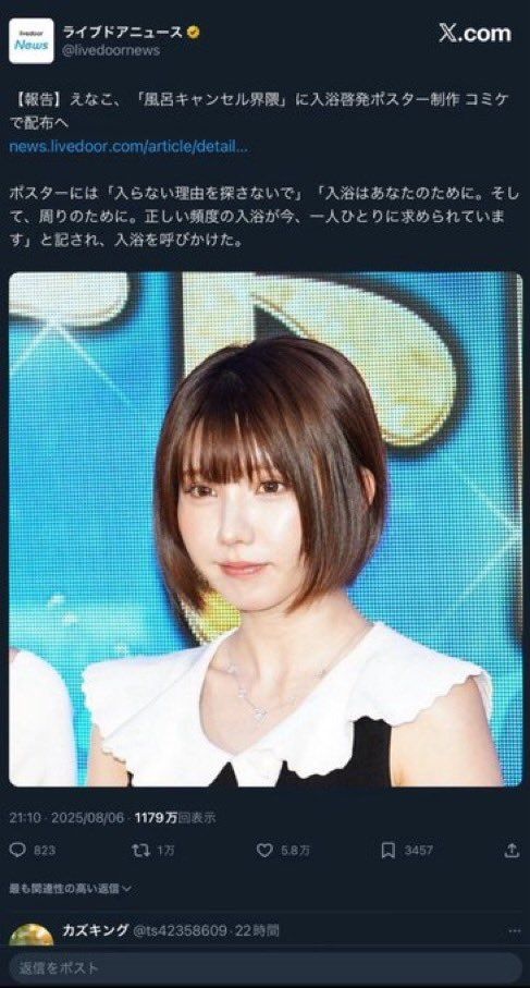ここで、えなこが『風呂キャンしないで』と呼びかけた際の、オタク達の反応もご覧ください - 4 : 2026/04/20 10:41:46 yU70v