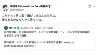 talk嫌儲 【高市悲報】シンガーソングライターの柴田淳「こうやって男に散々媚びてきたんだろうな」 トランプに媚びを売りまくるトカゲを揶揄 ←これにヤフコメ民発狂!
