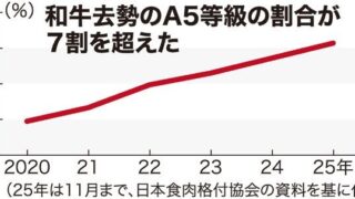 嫌儲 和牛「A5クラス」7割超え。一方、小売りなどには安く脂肪が少ない3、4等級を求める動きも
