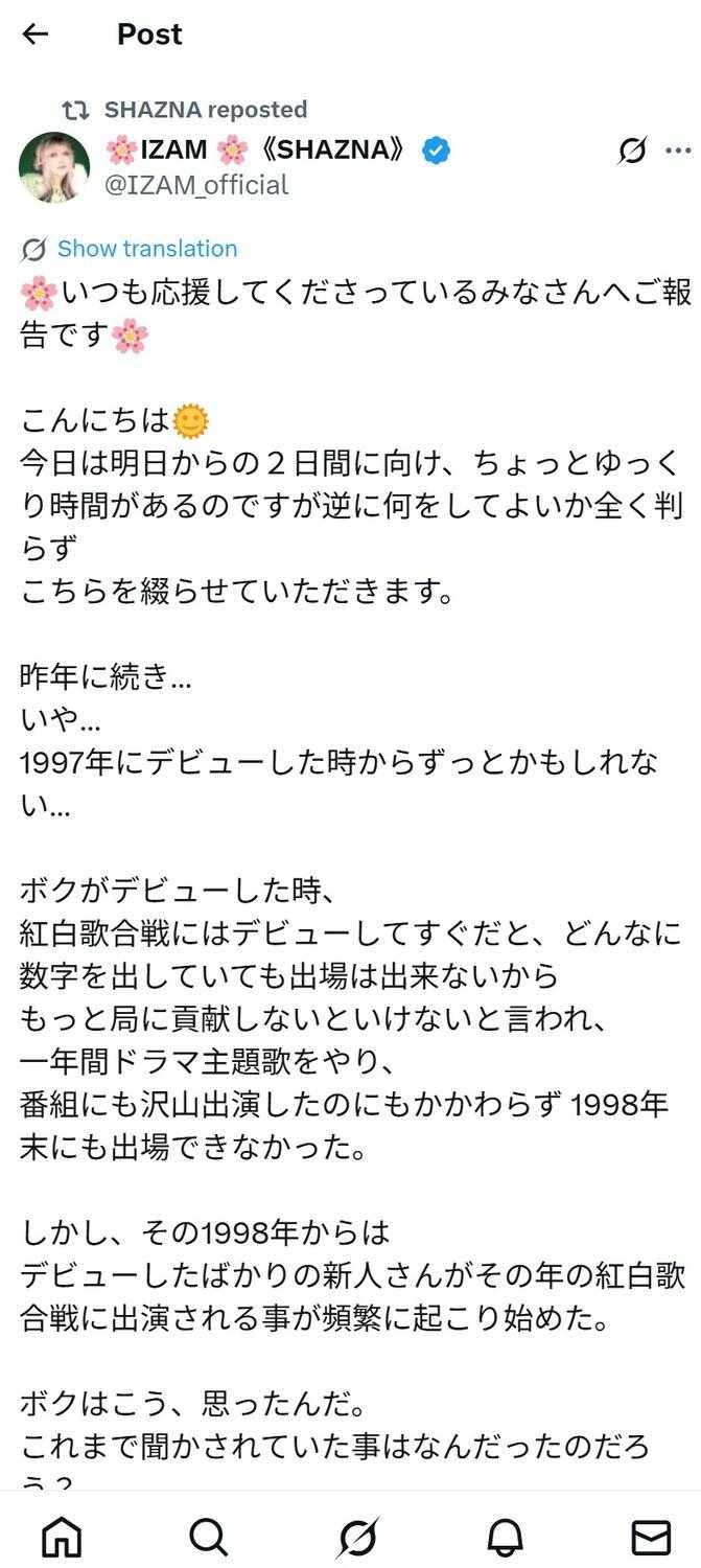 IZAM「今年もSHAZNAに紅白出演依頼ははありませんでした、、、」