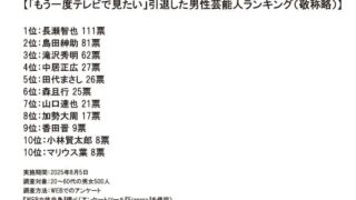 芸スポ 『もう一度テレビで見たい引退した男性芸能人』ランキング 5位田代まさし、4位中居正広、3位滝沢秀明、2位島田紳助 1位は…?