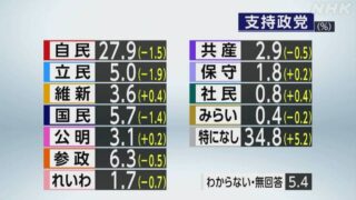 嫌儲 参政党、野党第一党へ。NHK政党支持率。さやママ、憲法改正だけはやめて