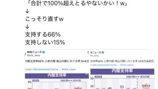 嫌儲 【愛国者悲報】NHKの内閣支持率、支持率と不支持率をたすと100%超えてしまうwww