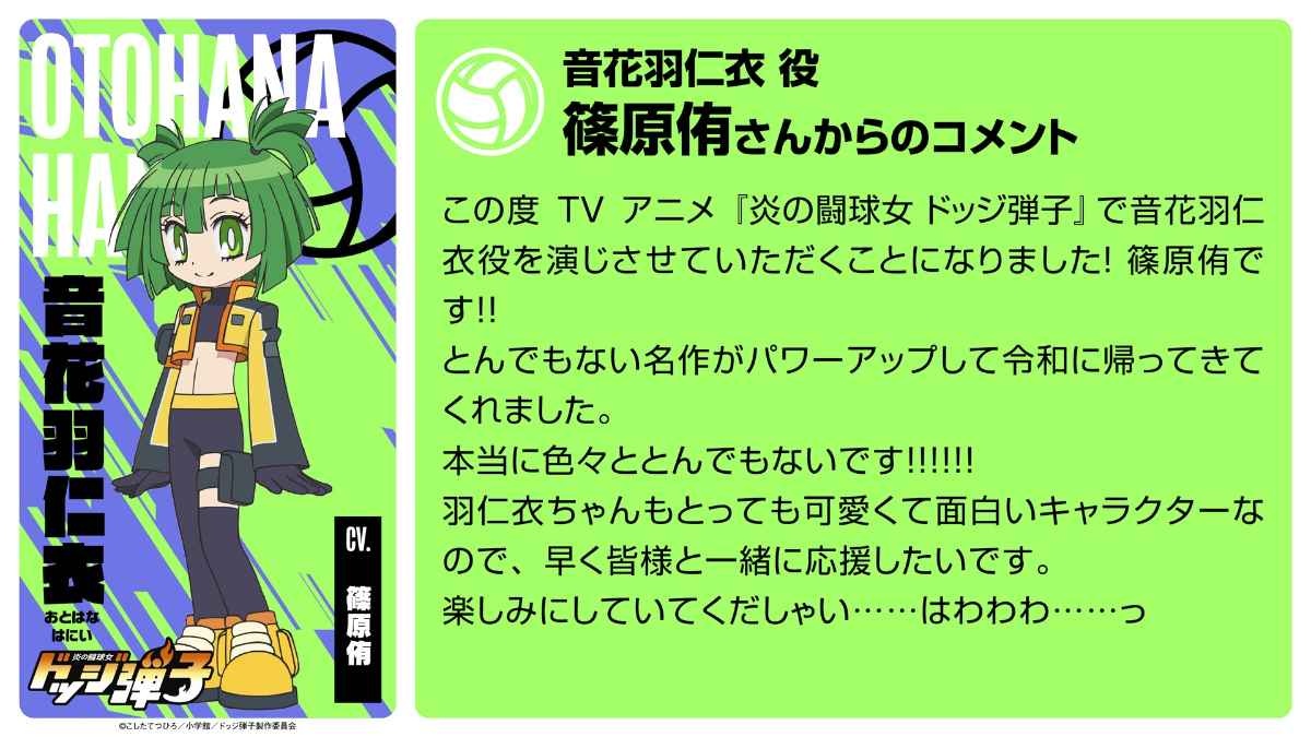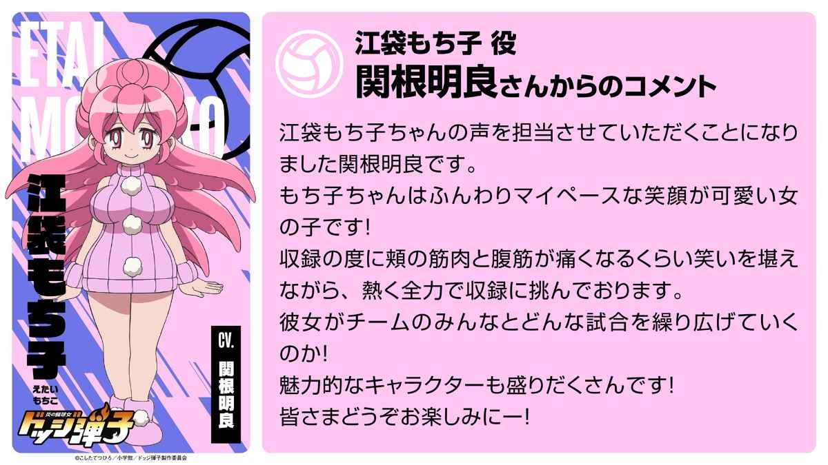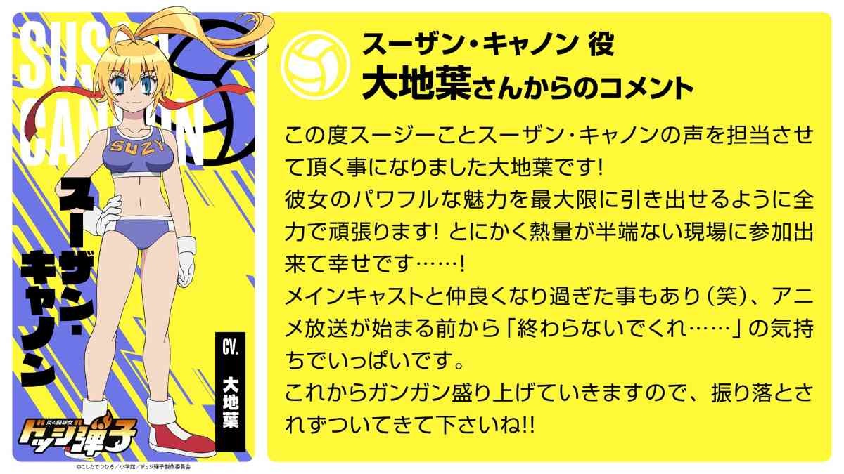 「炎の闘球女 ドッジ弾子」メインキャスト発表、日髙のり子も参加 監督は博史池畠(動画あり / コメントあり) - コミックナタリーこしたてつひろ原作によるTVアニメ「炎の闘球女 ドッジ弾子」のメインキャスト情報、スタッフ、ティザービジュアルが公開された。natalie.muTVアニメ「炎の闘球女 ドッジ弾子」