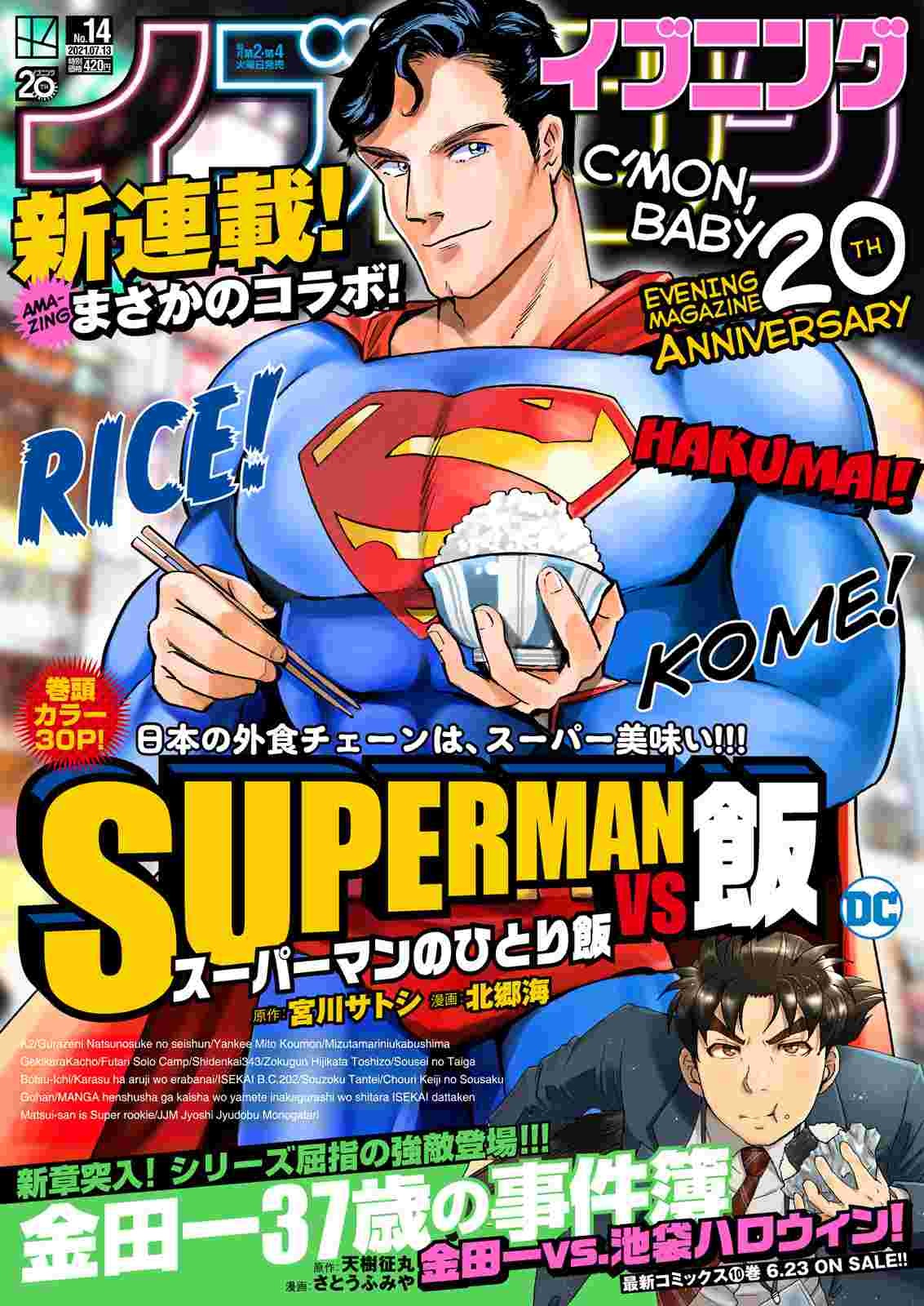 宮川サトシ原作による北郷海の新連載「SUPERMAN vs飯 スーパーマンのひとり飯」が、本日6月22日発売のイブニング14号(講談社)にてスタートした。
