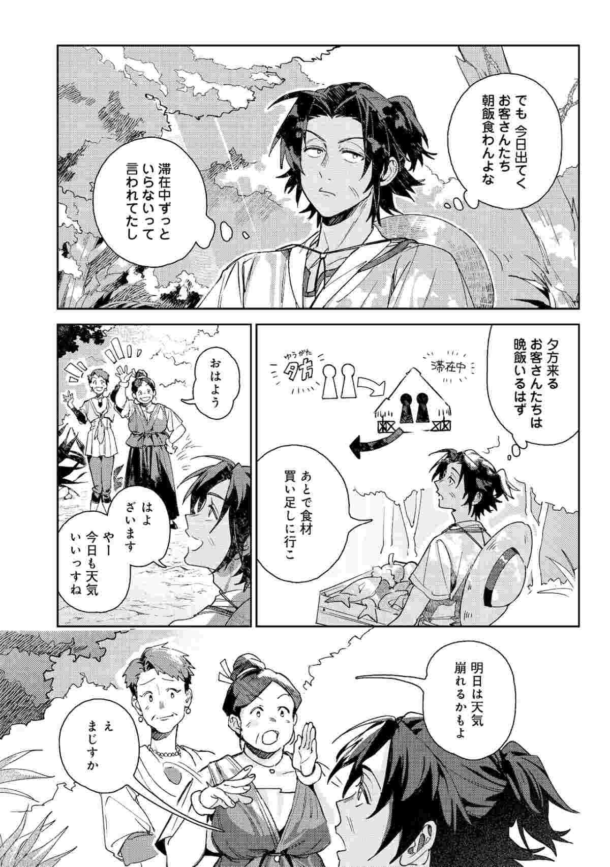 同作は岬による小説「穏やか貴族の休暇のすすめ。」のスピンオフ作品で、脚本は沙川りさが担当。リゼルたち泊まりつけの宿の主人・宿主の日常を見ることができる。滞在中の客をもてなすため、仕入れに洗濯と夜明け前から仕事に励む宿主の姿や、そんな彼のもとを訪れる珍客とのやり取りを描く。唐辛子入りのアクアパッツァなど、宿主が作るご馳走の数々も見どころだ。