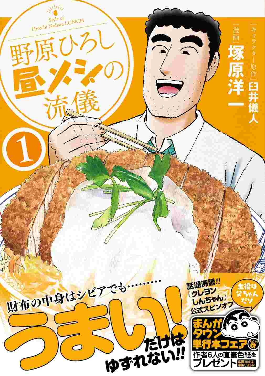 月刊まんがタウン(双葉社)にて連載されている、臼井儀人キャラクター原作による塚原洋一「野原ひろし 昼メシの流儀」の単行本1巻が、本日10月22日に発売された。