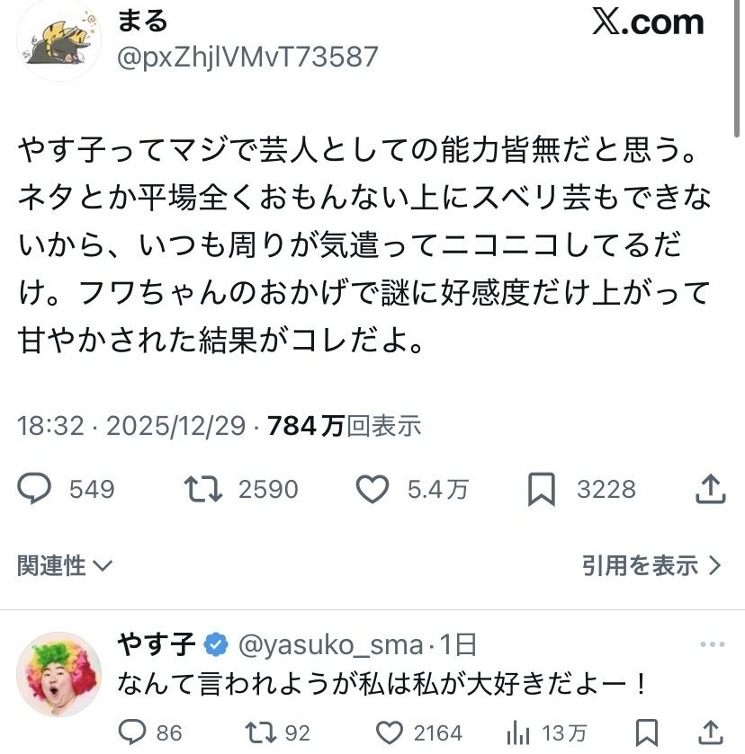 やす子もほんこん枠か - 24 : 2026/01/02(金) 08:23:15.88 ID:xwHXs1rir